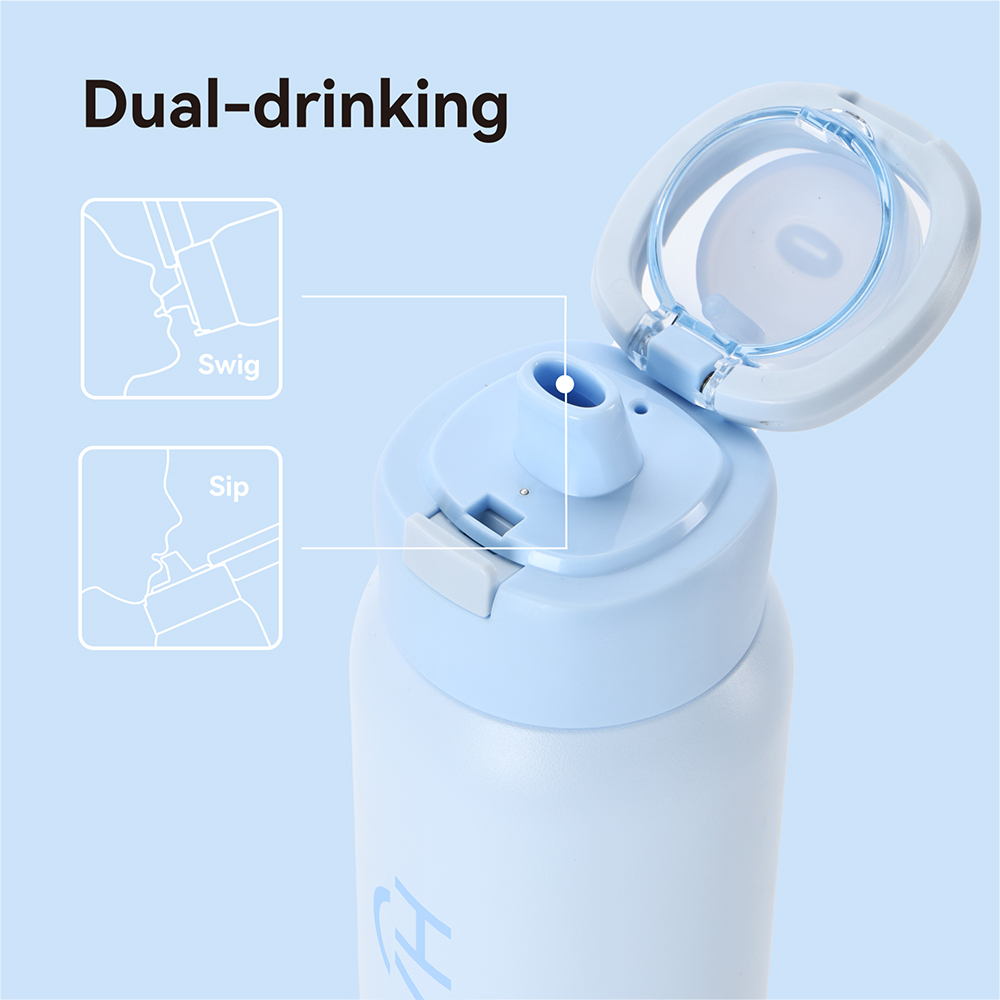 Designed with a patented dual-function lid, you can sip comfortably through the spout or take a quick swig when you need instant hydration—perfect for both relaxed moments and high-energy activities. - Pure Taste Easy Care