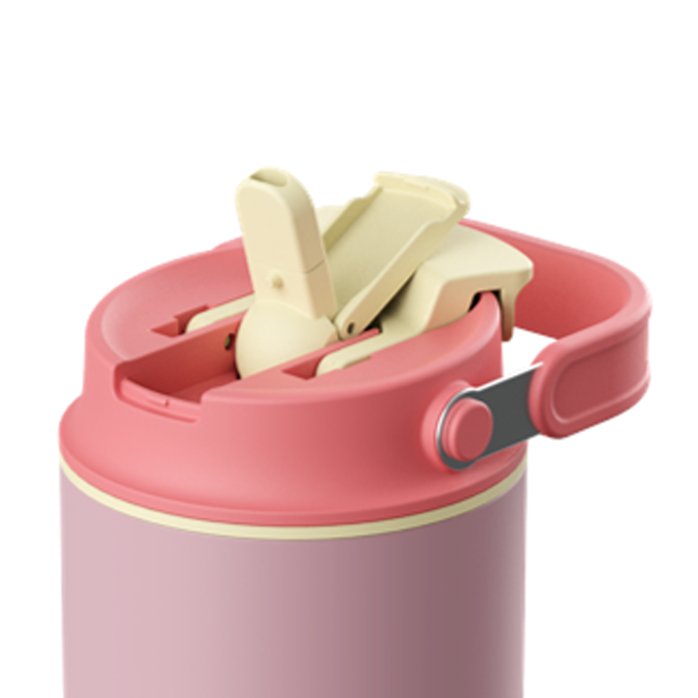 This tumbler is made of food-grade 304 stainless steel inside and out, with a lid and straw of food-safe materials. It offers durable powder coatings, colorful paint finishes, and quality textures. Features double-wall vacuum insulation that keeps drinks warm or chilled for 6–12 hours, a 2-in-1 lid for direct sipping or straw use, an easy-lift ergonomic handle for secure carrying, and a reliable leak-proof design to prevent spills.